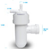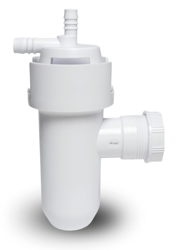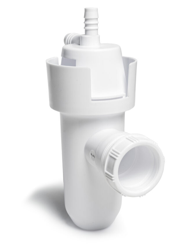 De afvoer en de overloop van de waterontharders dienen aangesloten te worden op het riool. Wij adviseren bij de aansluiting een luchtscheiding (airgap) aan te brengen. Dit voorkomt namelijk ten alle tijde dat rioolwater in het systeem kan komen. Naast de standard airgap bieden wij nu ook de ”waterontharder sifon” aan, deze dient dus meteen als stankafsluiter.